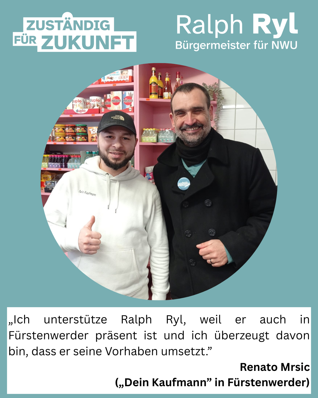 Empfänger: Ralph Ryl - IBAN: DE58 1509 1704 3010 6375 61 - Verwendungszweck: Unterstützung Wahl